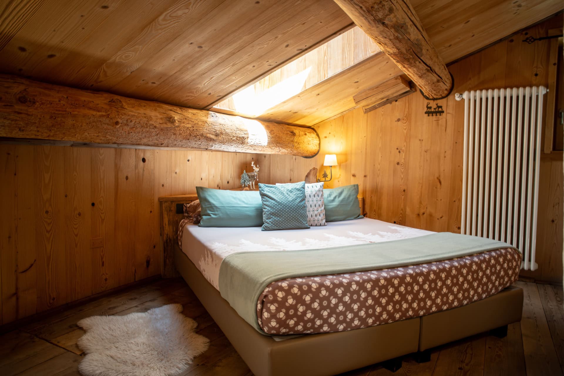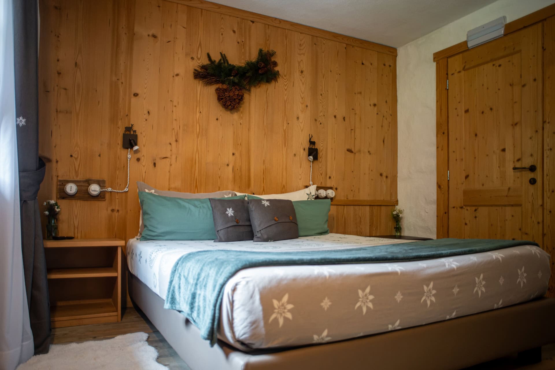 Le nostre camere sono arredate in stile alpino, mantenendo il fascino di una volta, utilizzando materiali vivi, legname di recupero, con diversi profumi e con storie diverse.